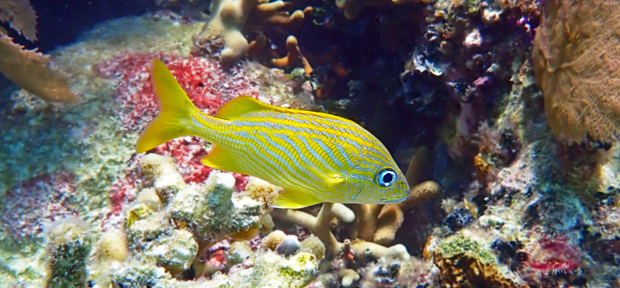 Spots and stripes of color are ubiquitous, on innocuous creatures like this French Grunt